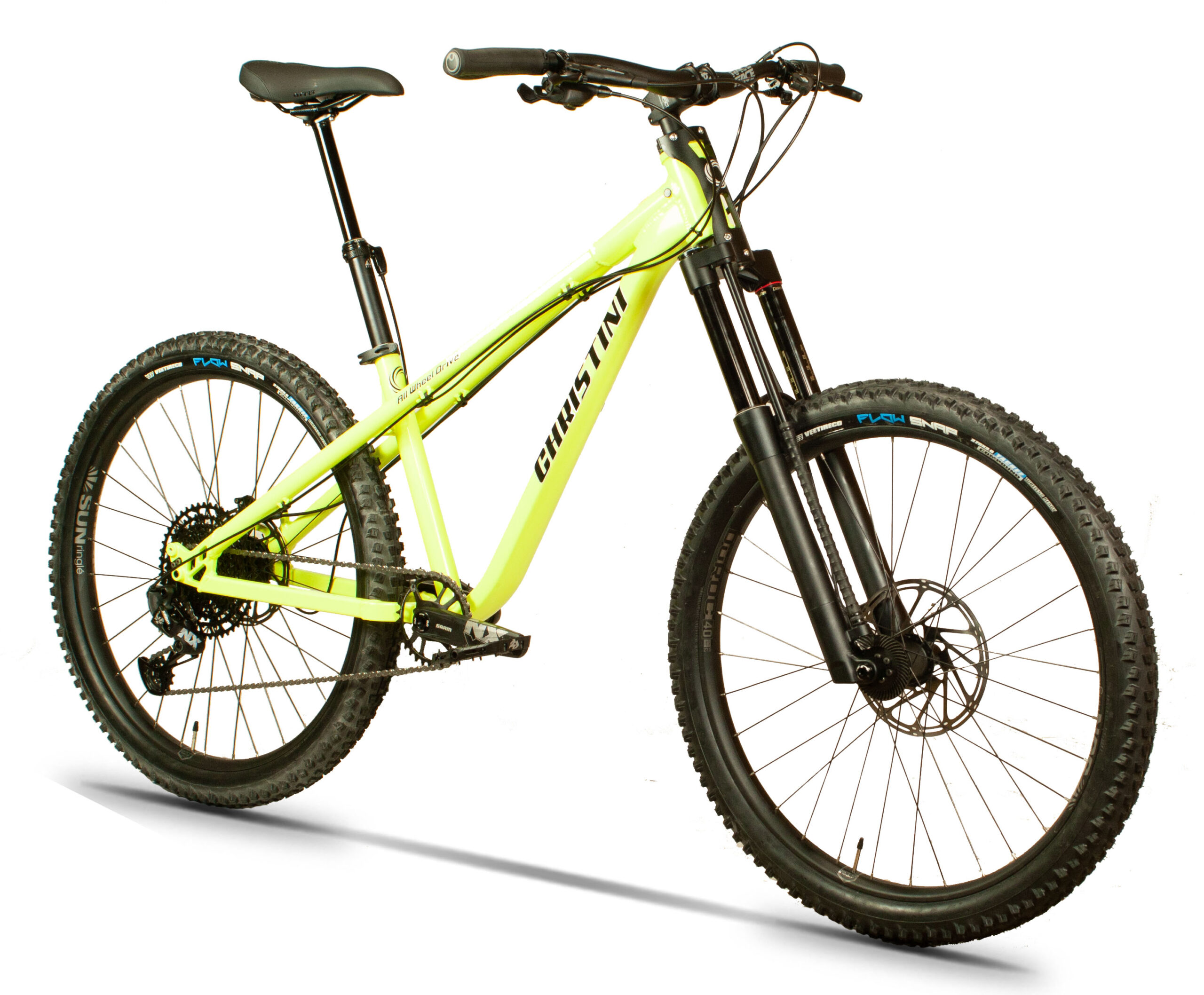 Based on our first ever AWD bike, this bike can slice and dice the trails but climb like a mule.  The proprietary state-of-the-art AWD system integrates cleanly into this 27.5+ split frame design using a custom 150mm travel 35mm stanchion suspension fork and SRAM NX Eagle component group.  The simple design allows for a convertible wheelset so you can go with a 29er setup and 2″ rubber as well giving you one of the most unique and versatile bikes on the market.